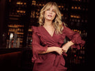 Superfin omslagskjole med med ton i ton firkanter. Kjolen har 2/3 armer luftige ermer med volang nederst. Det er også en volangkant nederst på skjørtekanten og på brystet . Kjolen er fôret, men ikke på ermene. Dette gir en kul effekt. Kjolen er helt lukket bak, og lukkes med knyting i siden. Kjolen er like fin til hverdag og fest, med og uten strømper. Modellen er 168 høy og har på seg small. Størrelse: XS, S,M,L,XL Størrelse: Klikk her for størrelsesguide Stoff: Kjolen er laget i 100 % polyester. Vask: Renses. Vi anbefaler å steame kjolen fremfor å stryke. Strykes på lav varme.