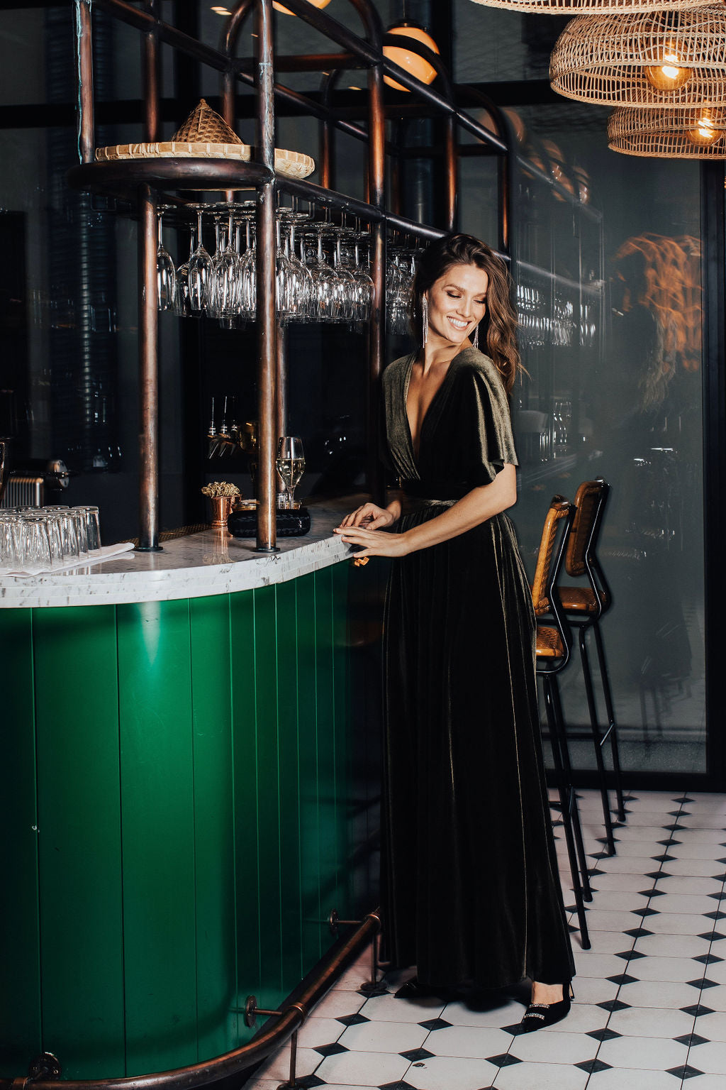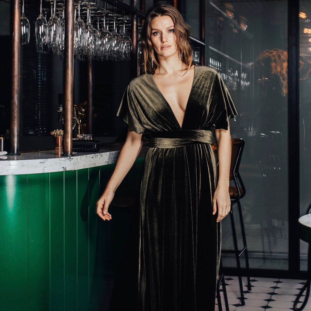 Knytekjole olivengrønn fløyel